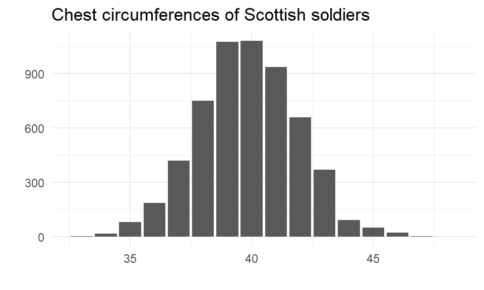 In 1846, a Belgian scholar Adolphe Quetelet published an analysis of the chest sizes of a full population of 5,738 Scottish soldiers.