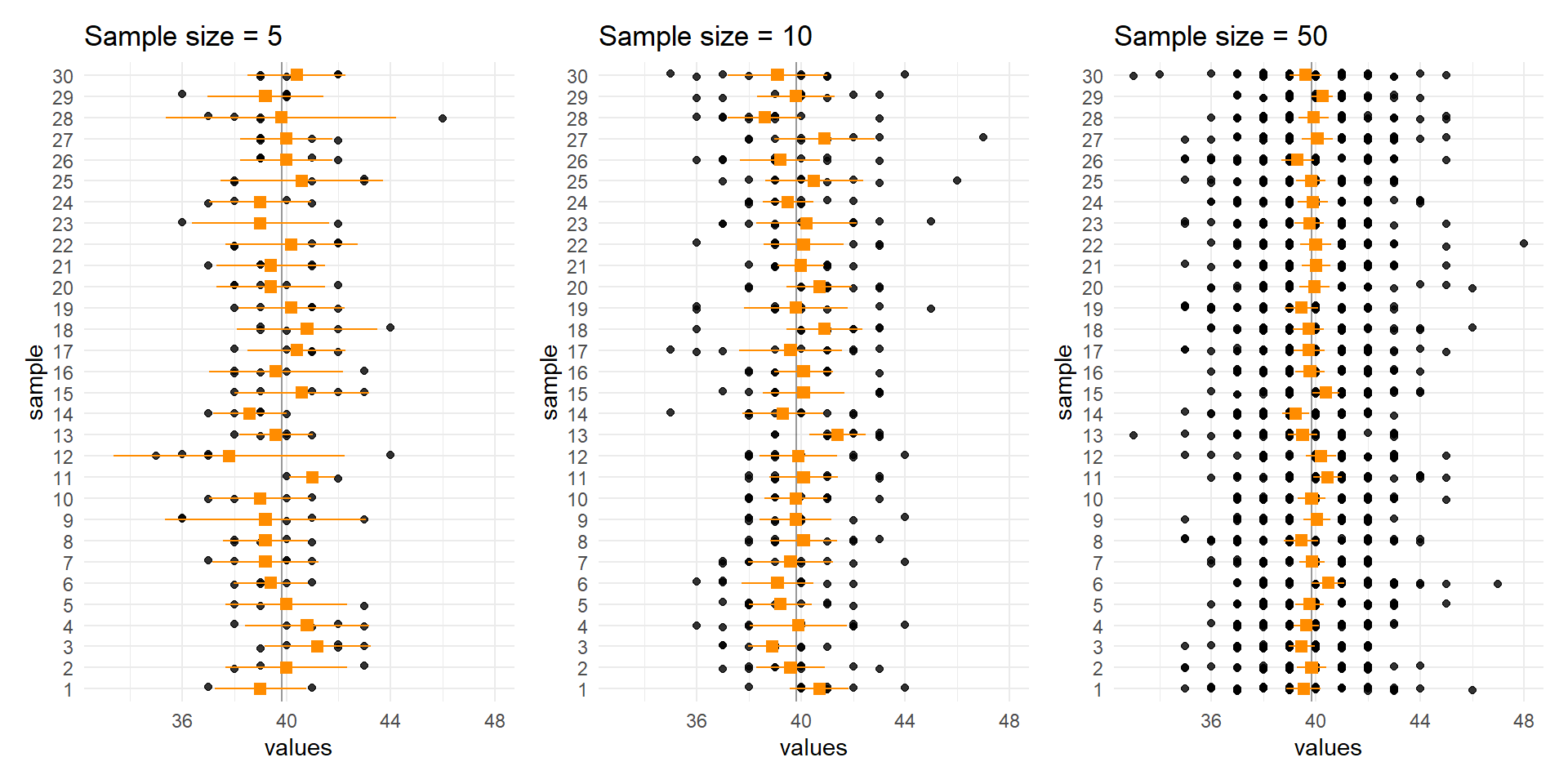 mapping = aes(y = sample, x = mean),