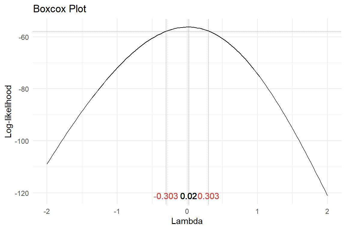 R gives a point estimate of the Box-Cox power & a confidence interval.