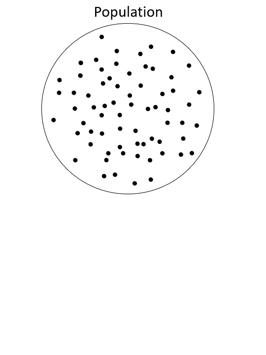 For example, say you wanted to know the mean length of the leaves on a tree (\(\mu\)). You wouldn’t want to (nor need to) measure every single leaf! You would take a random sample of leaves and measure their lengths (\(x_i\)), calculate the sample mean (\(\bar x\)), and use \(\bar x\) as an estimate of \(\mu\).