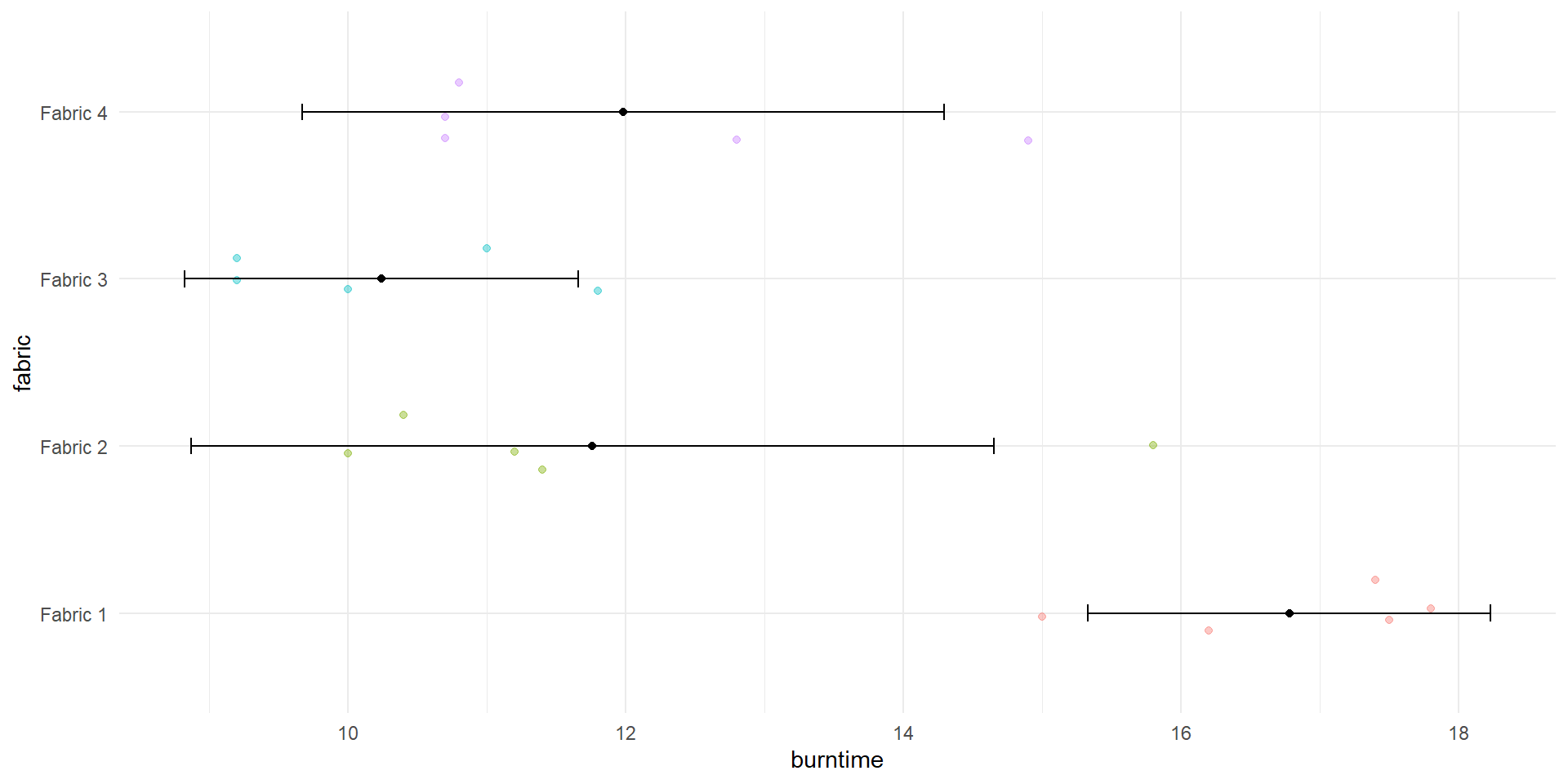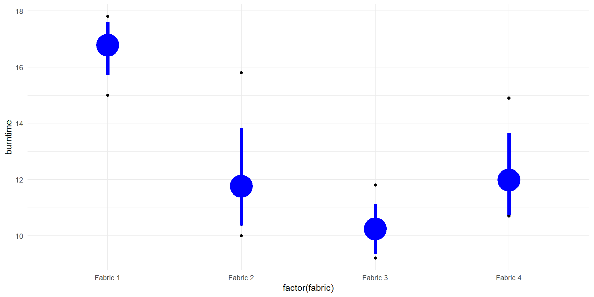 In other words, the null hypothesis of equal mean burntime is rejected.