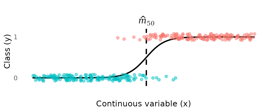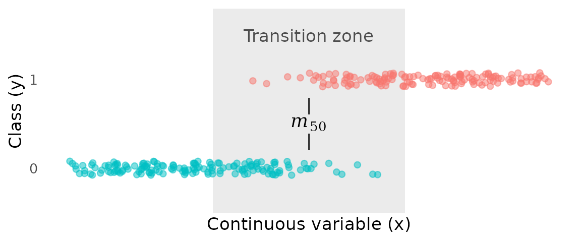 Estimating a transition point between two classes—the point along a continuous variable where the probability shifts from one class to the other for binary variable —is a simple and common task. For example, the length at which individuals of a species shift from immature to mature is an important life-history parameter.